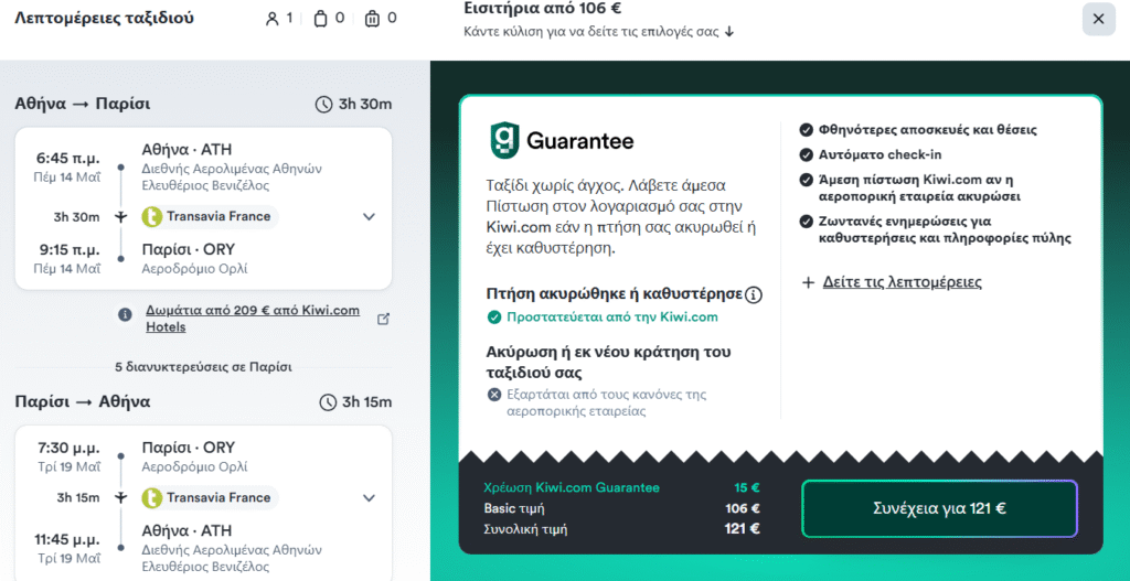 - ✅ Υποστήριξη από την Kiwi.com σε περίπτωση προβλήματος