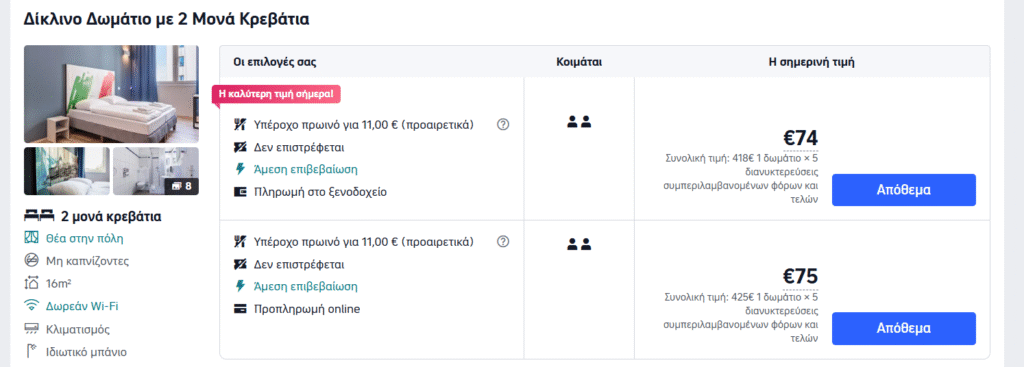 💰 Τιμή δωματίου: 418€ συνολικά για 5 διανυκτερεύσεις (φόροι & τέλη συμπεριλαμβάνονται)